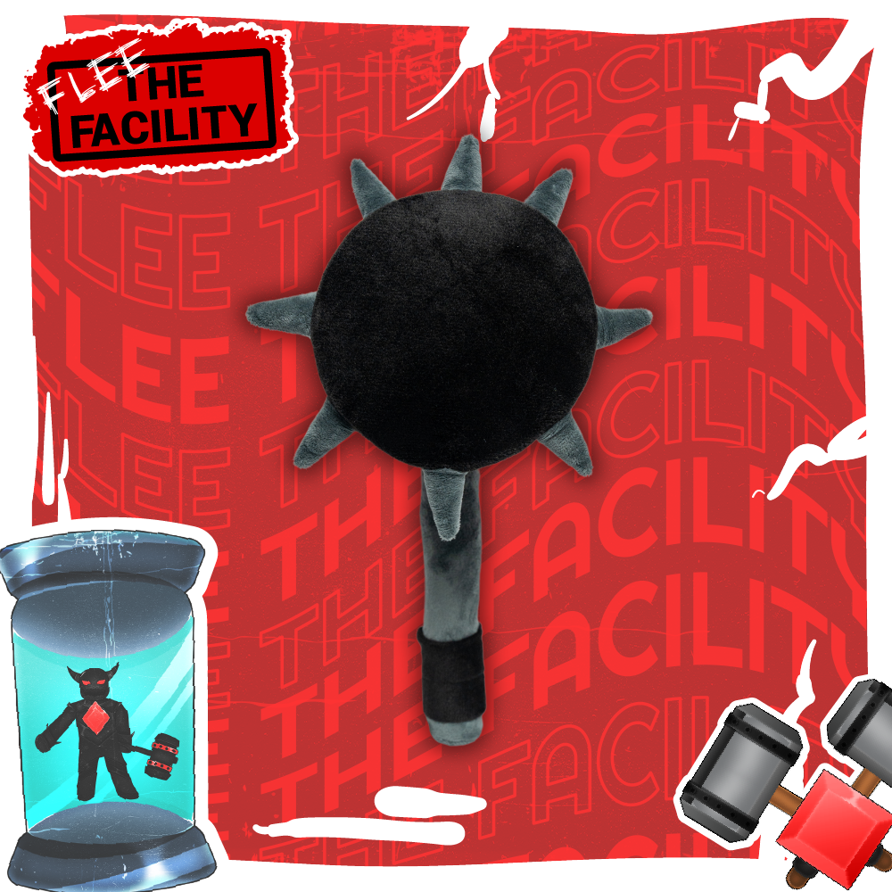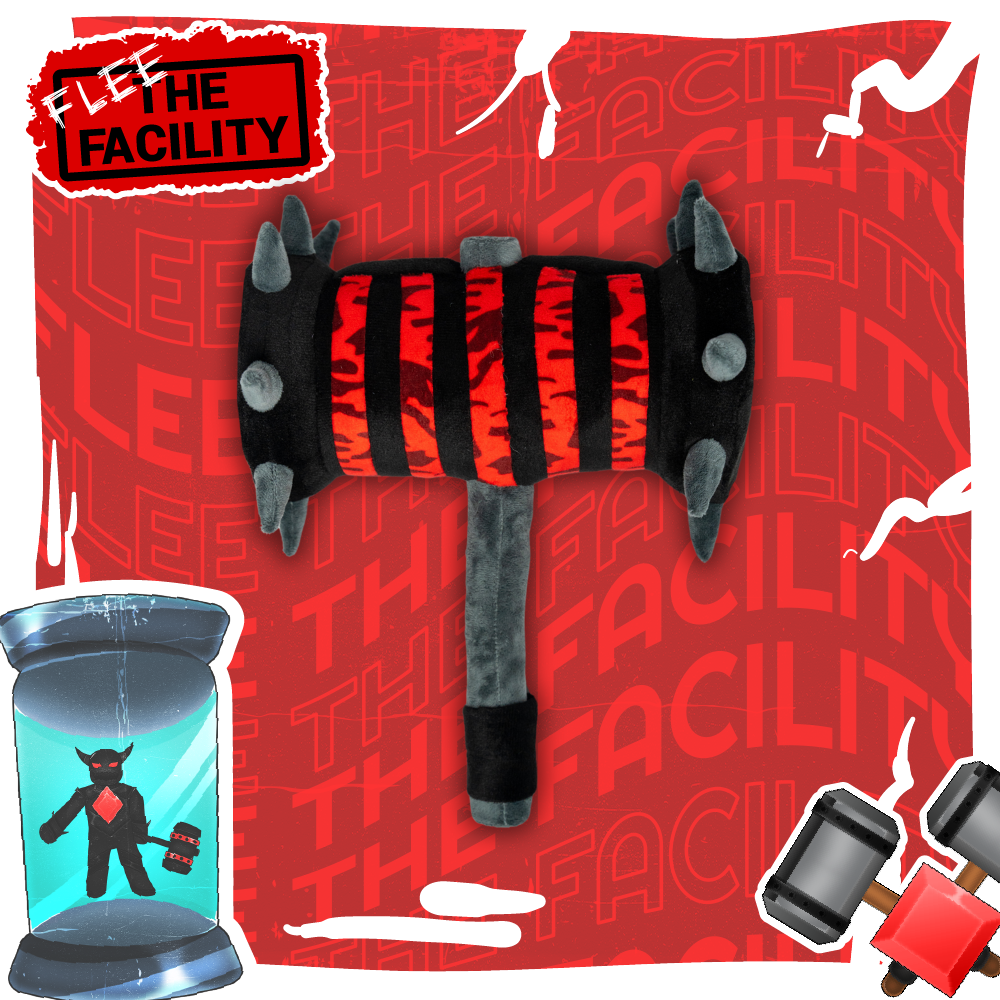 Crush your enemies (or just your nap time) with the Bone Crusher Hammer Plushie! Inspired by the iconic hammer from Flee the Facility on Roblox, this soft yet fierce plushie is perfect for gamers and collectors alike. With bold red and black detailing and plush “spikes,” it brings the thrill of the game into your hands. Whether displayed on a shelf or hugged tight during gameplay, it’s a must-have for every Flee the Facility fan!